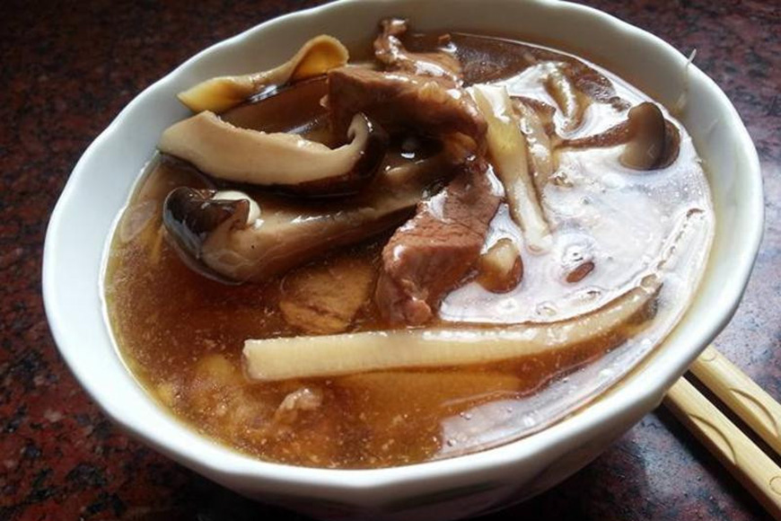 這位魔術師──我的婆婆,每天一早都要到巿場工作,這兩味美食,肯定是她前晚提早備料,隔日起早料理的。雖然婆婆透早就煮好,廚房空氣中卻仍瀰漫著香菇、扁魚的濃郁香氣。高高一大桶肉羮,滿滿的大塊埔里黑菇和入味的瘦肉條,有婆婆大鍋大灶的豪氣,甘甜滑潤的湯頭入口,全家的惺忪睡眼被幸福的滋味喚醒,讓人忍不住一碗再一碗……。