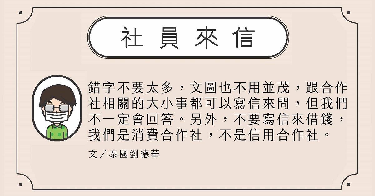 | 來 信 請 寄 台灣主婦聯盟生活消費合作社 24160新北市三重區重新路五段408巷18號 綠主張月刊收 或E-mail 至:editor@hucc-coop.tw |
