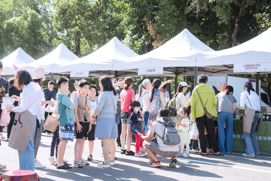 2025國際合作社年倡議共同建立更好的世界,其中一個行動是提升公眾對合作社的認識。新竹分社想把理念拉出站所,主動向民眾介紹合作社推動「共同建立人與環境良善循環」為核心的消費行動。行事風格十分明快的巫佩純理事,是促成這個想法的關鍵人物。佩純參考台南分社已舉辦多屆的「深蹲市集」,認為市集可以打破室內活動的藩籬,把各站的活動教室搬到街道,就像在城市裡開一場多元主題的露天沙龍。這場沙龍可以一口氣含括多個合作社關心的主題,像是友善耕作、社區環境、全齡關懷等議題;透過品嘗食物、聽故事、親手觸摸的方式,邀請還不認識合作社的民眾,用五感體驗的方式,一同探究菜籃子裡所盛裝的食農理念。