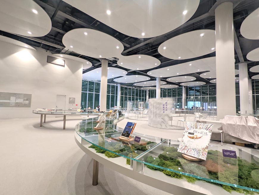 座落於中央公園北側的綠美圖,從一樓入口處進去,帶給參觀者的感受就是一個藝術展場,這也是綠美圖的定位──結合臺中市立美術館與市立圖書館。人們可以在通透的空間中自由走動、觀賞;到三樓才找得到借還書服務的櫃台。這裡還會辦理各式有趣的活動,像是「夜宿綠美圖」的親子活動,一上線名額就秒殺呢!