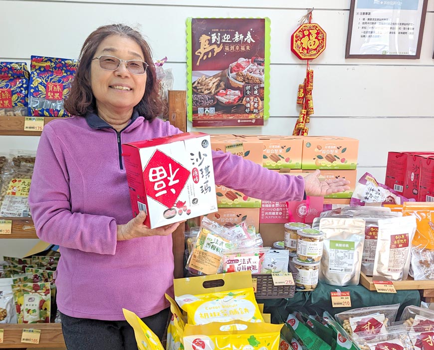 身為三個孫子的阿嬤,玲珠最推薦米穀粒和糙米果,搭配鮮乳坊保久乳就成了孩子們放學後的最佳點心。年節送禮則是選擇部分原料為合作社指定原料製作的沙琪瑪,搭配喜氣的禮盒,送人自用兩相宜。她更常運用蝦仁來料理,易煮鮮甜不縮水,社員們看到架上有貨的話,切記快手買回家一試!