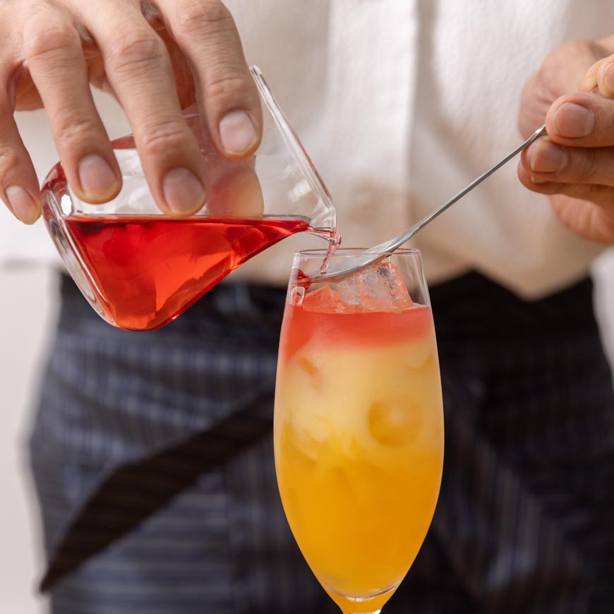 ◆ 加入冰塊作為緩衝:先放入冰塊再倒入液體,可以減少液體直接衝擊底層,有助維持分層。