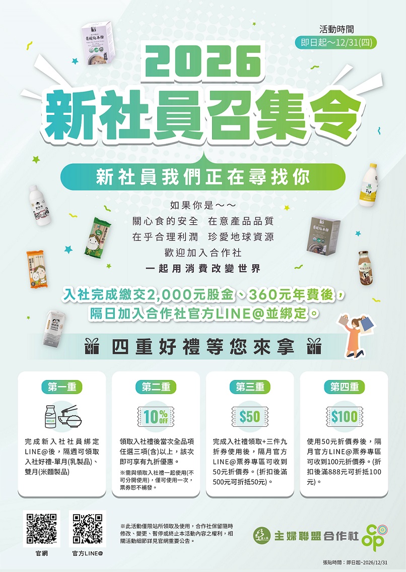 【2026新社員召集令】加入社員並綁定LINE@獲得四重好禮