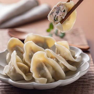 | 調理方式 | 1.水餃不可退冰。 2.用較高深的鍋子、大滾後放入水餃、用湯勺背輕輕攪拌滾水中的水餃約30秒、以防黏鍋。 3.蓋上鍋蓋一隙縫、水滾約兩分鐘後加入一碗冷水、再次滾後馬上加一碗冷水、重複3次 4.水滾後、滾約2分鐘後即可起鍋。 |