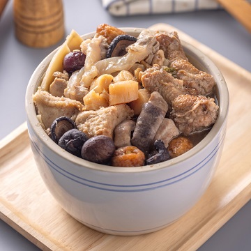 | 內容物 | 水、蹄筋(台灣) 、芋角(芋頭、棕櫚油) 、小翅腿、豬肉*(台灣) 、豬肚(台灣) 、鵪鶉蛋、杏鮑菇*、筍片(麻竹筍、鹽) 、栗子、香菇素蠔油(小麥、非基改黃豆、水、鹽、糖、糯米、香菇、昆布)、蒜、糖、優質紅棗*、乾干貝(帆立貝、鹽) 、香菇*、油蔥(紅蔥頭、非基改芥花油、麵粉) 、蔥、蝦米*、雞肉醬(雞抽出物、酵母抽出物、麥芽糊精、水、雞肉、食鹽、雞油、香料) 、魚露(鯷魚萃取物、鹽、糖) 、豆麥醬油*、玉米澱粉(非基因改造) 、麵粉、鹽、調合油*(葵花油、冷壓花生油、苦茶油、低溫胡麻油) 、薑、白胡椒粉、花椒粒、五香粉(肉桂、小茴香、胡荽、丁香、八角、香芹) 、肉桂粉 |