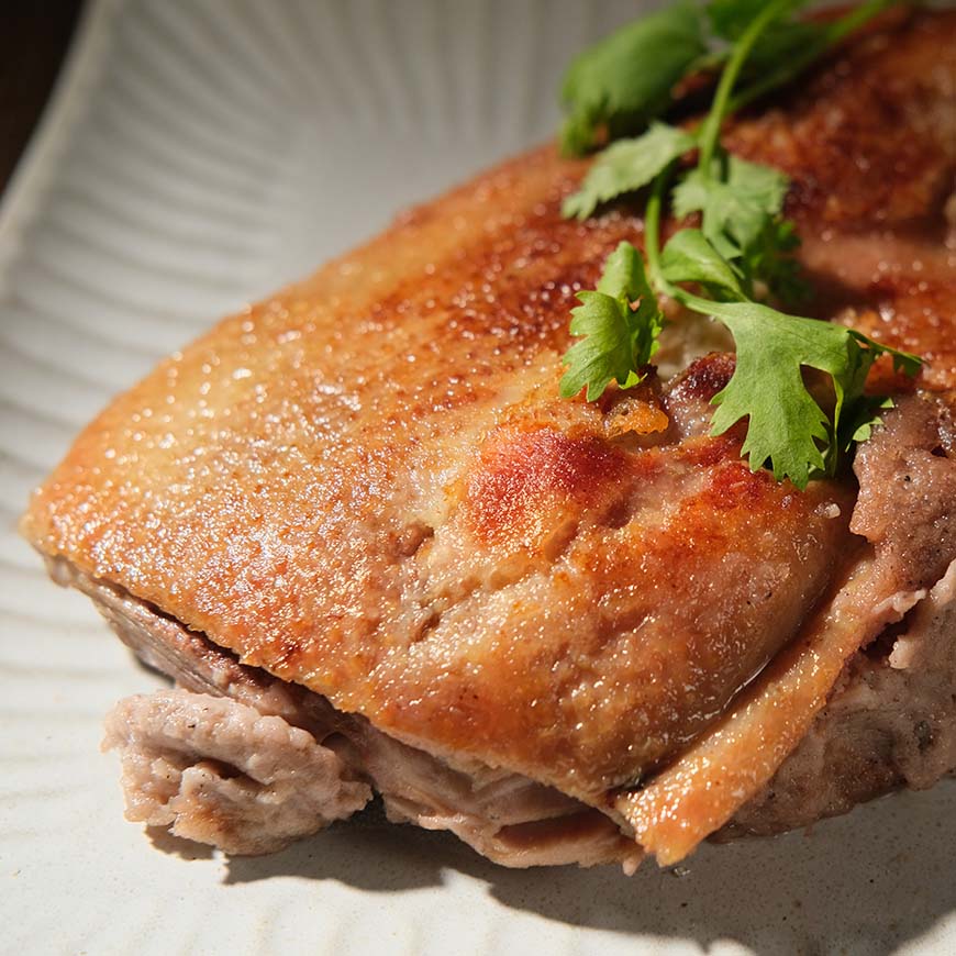 生產者自家飼養的土番鴨,肉質肥美,搭配來自大甲檳榔心芋頭;全鴨低溫清蒸後去骨,再與混入鴨油的芋泥結合,一口咬下酥脆、肥嫩與綿密,三重口感同時享受。