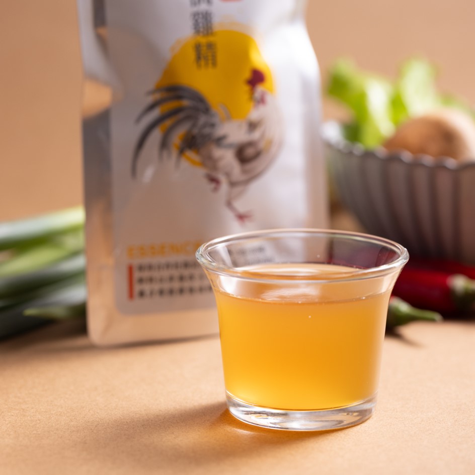 生產者為龍彧食品,使用合作社指定、飼養全程不用藥,以非基改的善糧飼料餵食之白肉雞的雞精。適合做為探病或坐月子的禮品。請以電鍋或隔水加熱,拆開後即可飲用。