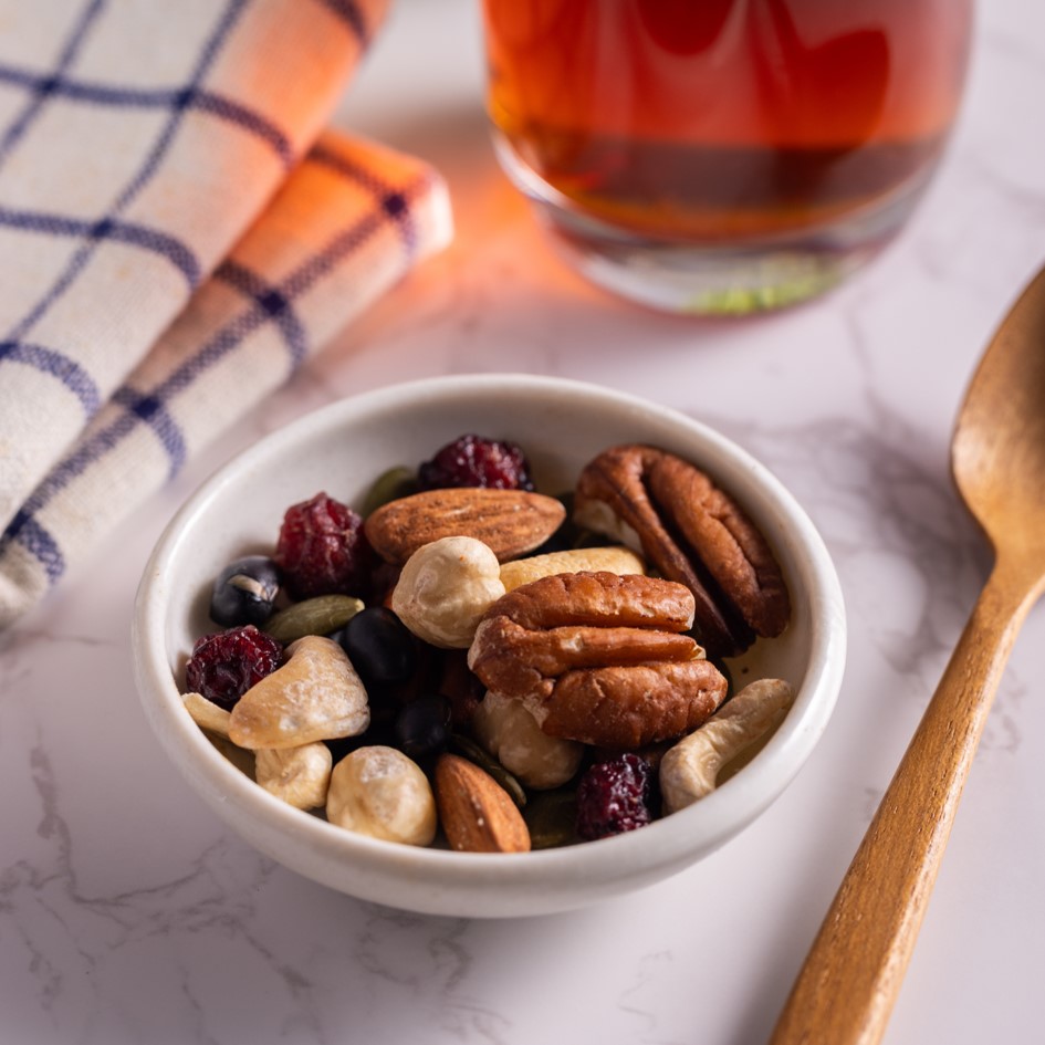 | 內容物 | 胡桃(美國)、腰果(越南)、杏仁(美國)、黑豆(台灣)、南瓜籽(中國)、全果蔓越莓果乾(蔓越莓、糖、葵花油)(加拿大)、榛果(土耳其) |