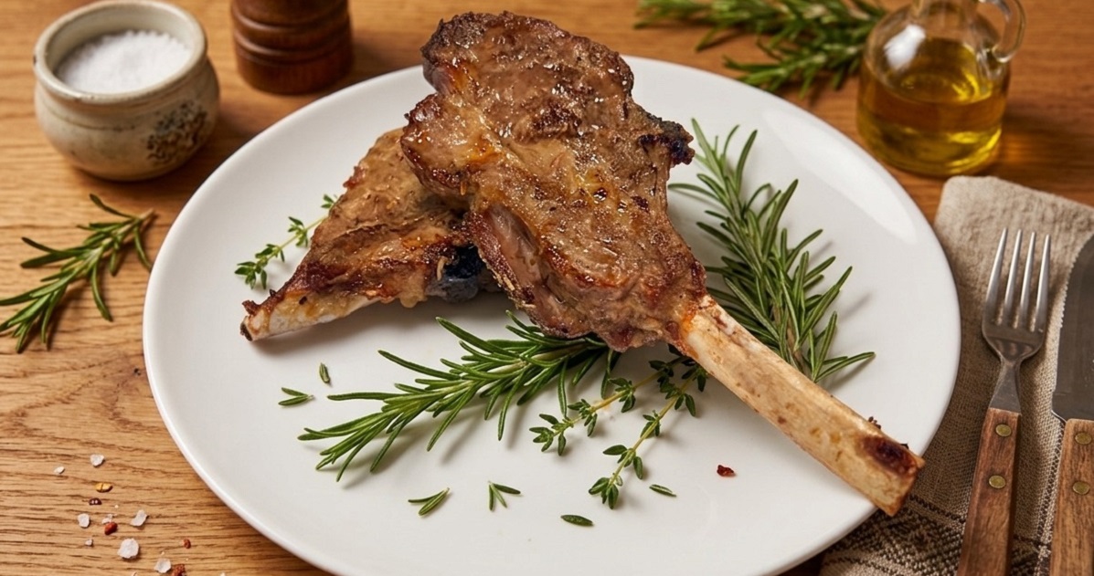 2. 羊肩排抹上鹽巴、蒜泥,撒上黑胡椒粉及義式香料粉醃製一小時或隔夜。