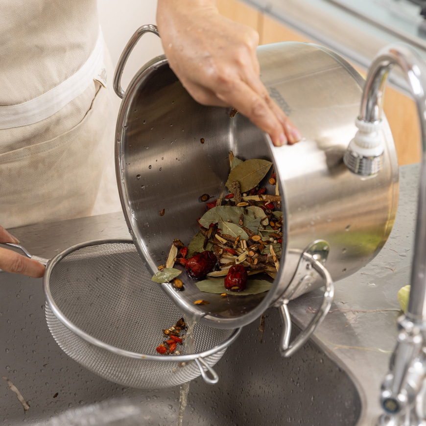 1. 肉骨茶燉料加入3公升的水熬煮30分鐘。 |