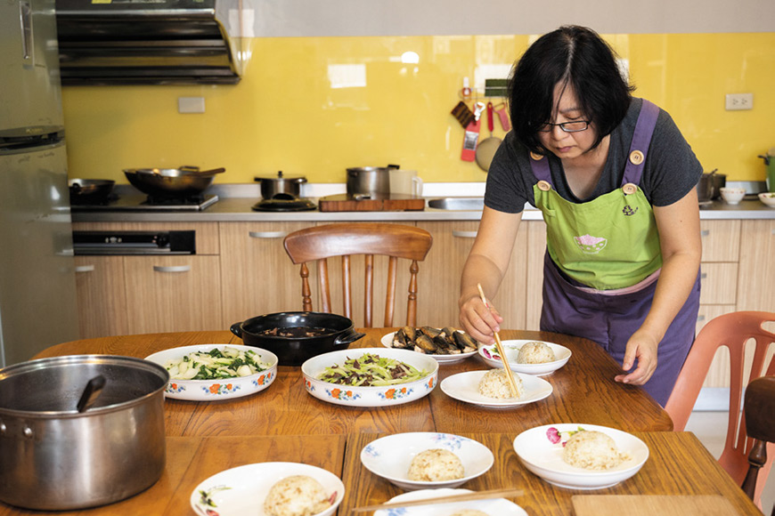 於是幾個員工輪流掌廚,但一些不擅長烹調的,一來手腳沒這麼俐落,二來對自身廚藝缺乏信心,員工呂慧芬見狀,索性主動認領這份工作,隨後,同樣擅長料理的阮碧玉也跳出來承接,若兩人都忙不過來,年輕的員工林家玉也能幫忙。