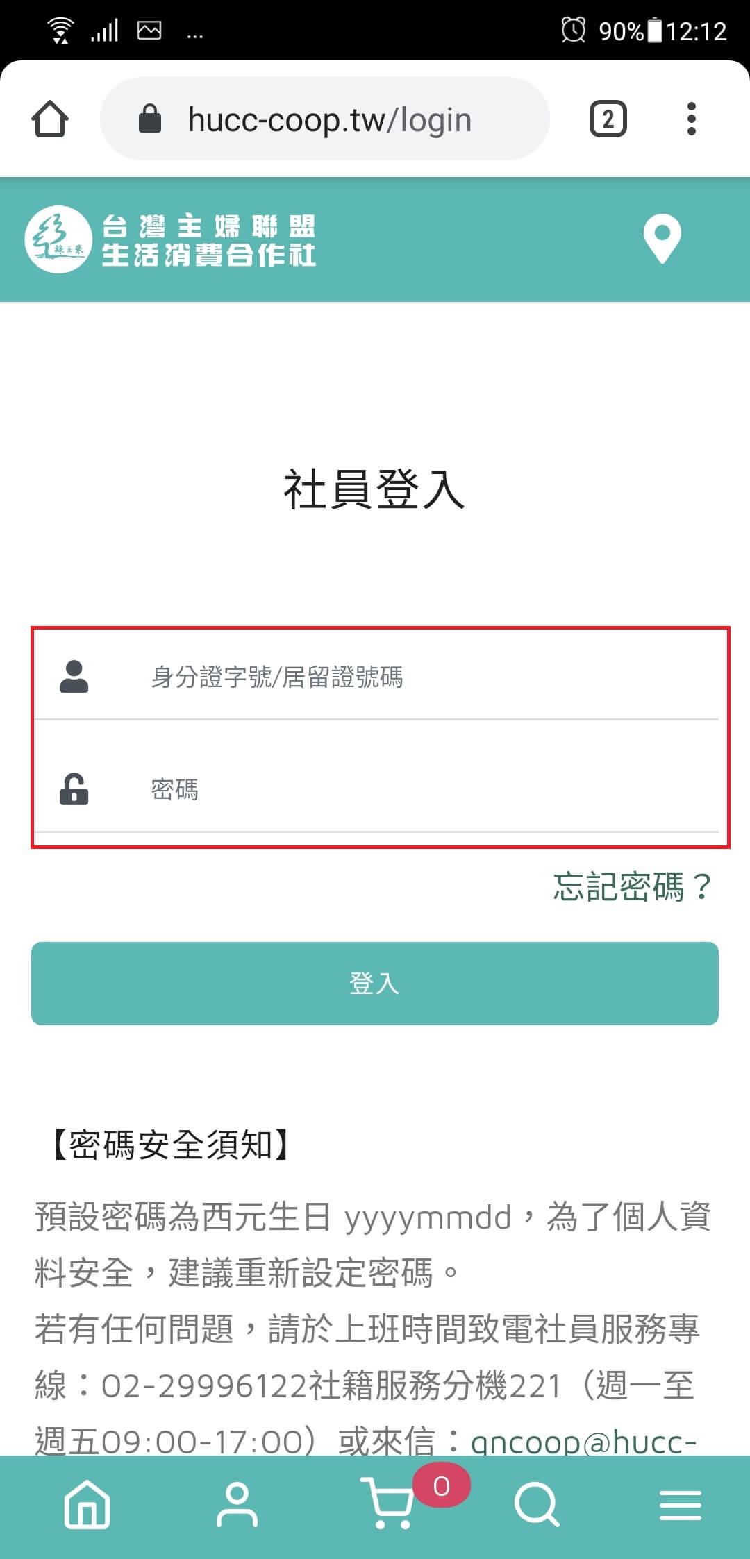 1. 填寫帳號密碼登入