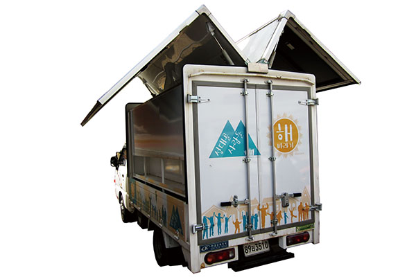 ▲行動太陽能車在首爾市區展示並推廣太陽能發電。
