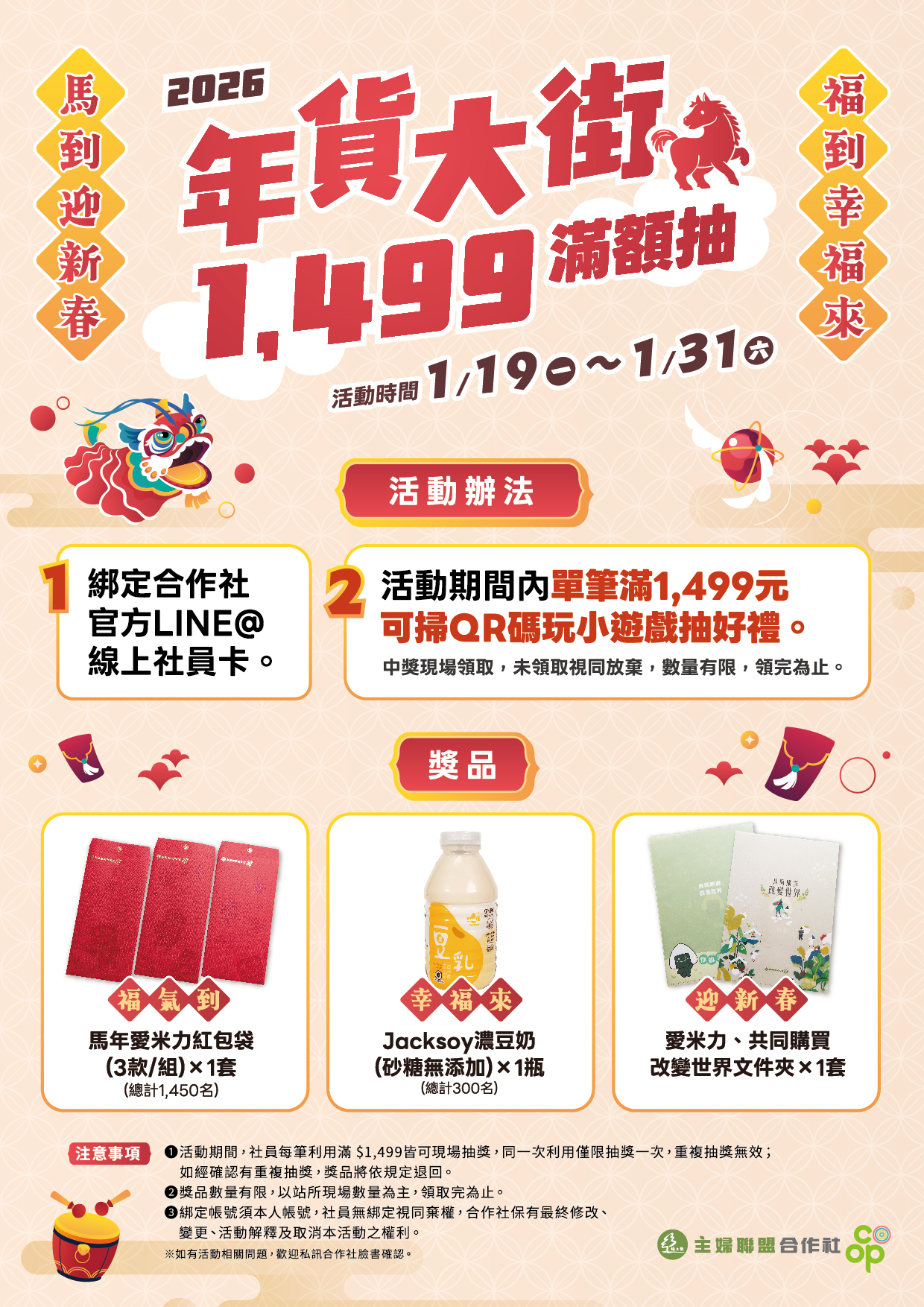 【檔期活動】1~2月馬到迎新春 福到幸福來